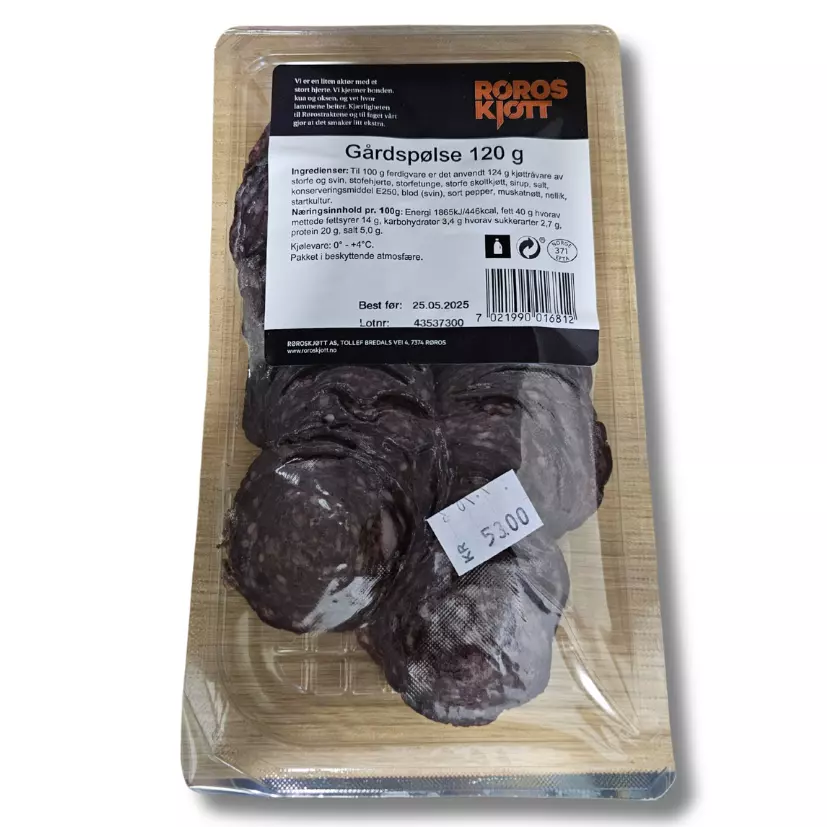 Gårdspølse oppskåret