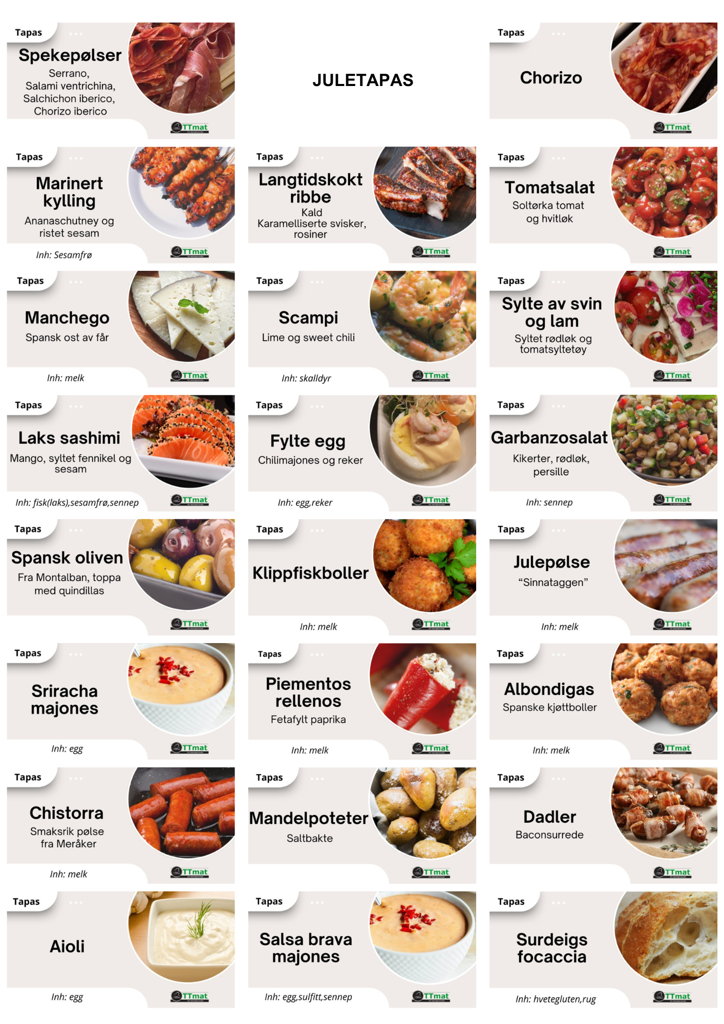 Info om innhold og allergener