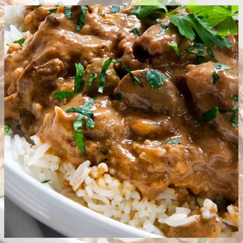 Langtidskokt grytekjøtt av hjort, kremet med fløte (selleri, melk)